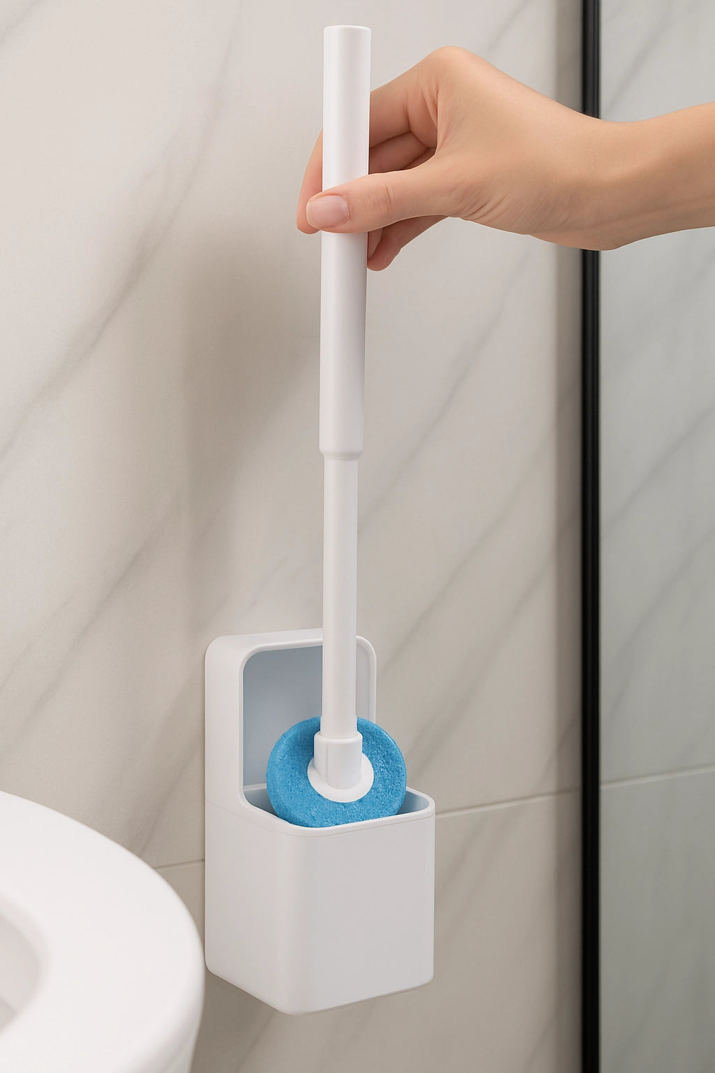 A BuddyBlitz™ egy modern WC-tisztító, amely leváltja a hagyományos kefét — nincs szag, nincs erőlködés.